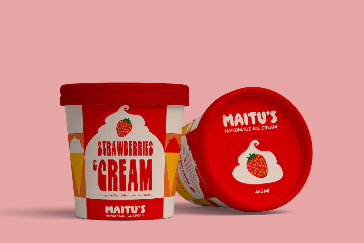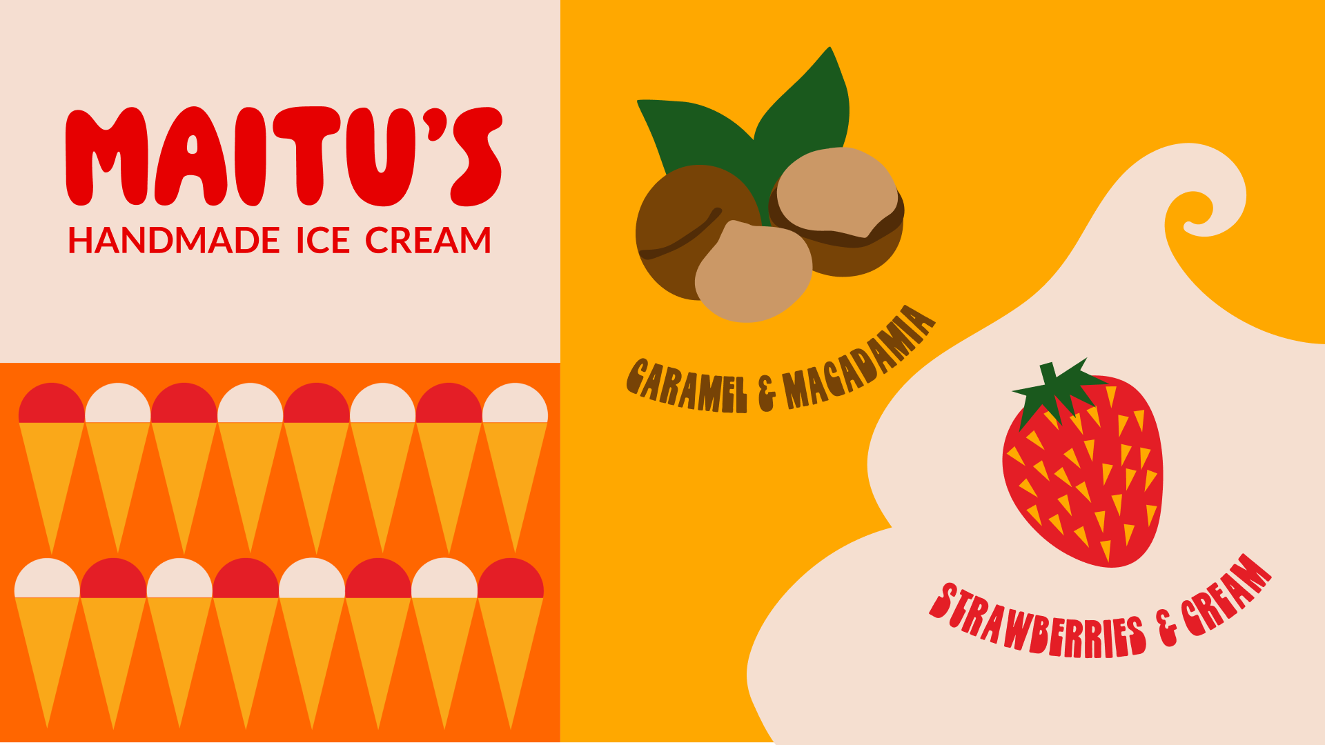 A vibrant and playful ice cream brand with a nostalgic, offbeat charm. The brand celebrates Maitu’s high-quality ingredients and irresistible flavors while capturing the joy and warmth of his family’s ice cream parlour.